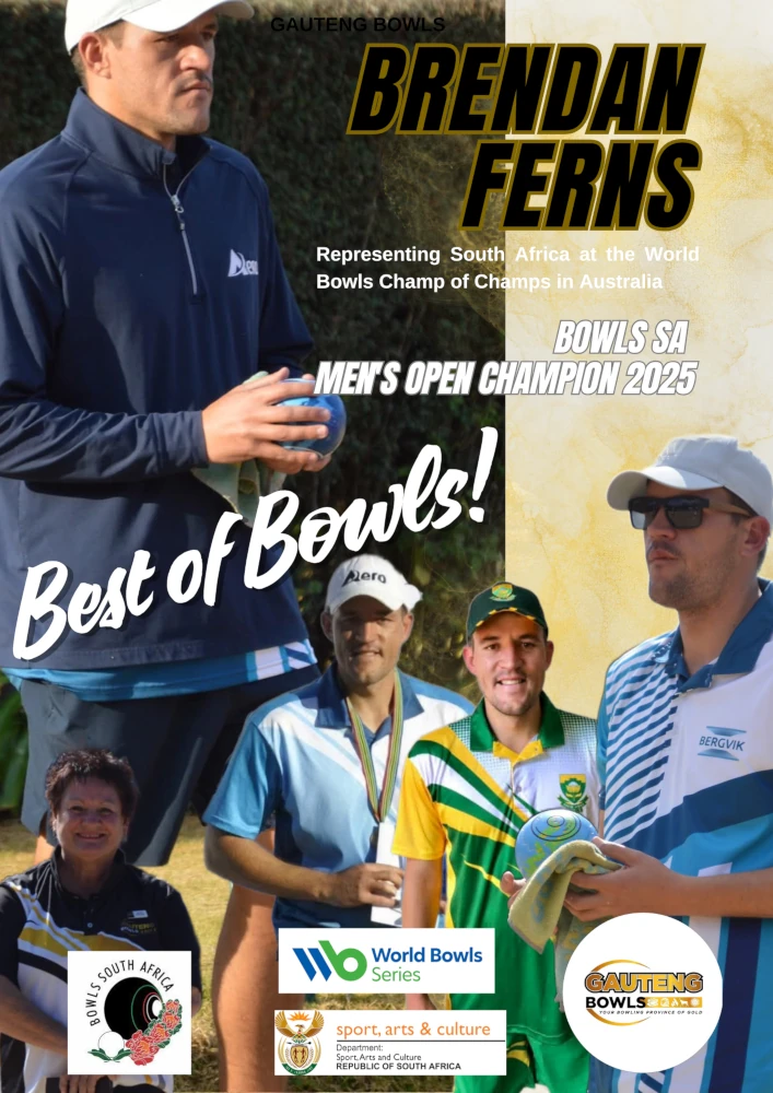 “Brendan Ferns, our outstanding Men’s Open National Champion from Bowls Gauteng North, is set to represent our province and our country with distinction. He truly embodies the spirit of Gauteng Bowls - dedication, excellence, and pride.”